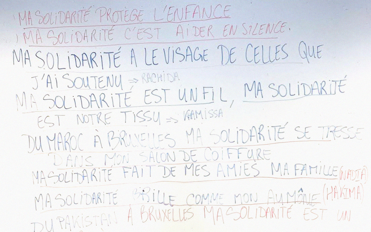 En septembre et octobre 2024, le projet “Chants de lutte” a donné lieu à 7 ateliers animés par l’auteur et animateur Marwane Lakhal, dans des classes de Français Langue Étrangère de la Maison des femmes de Molenbeek - Move ASBL et du Centre Tefo à Bruxelles.
